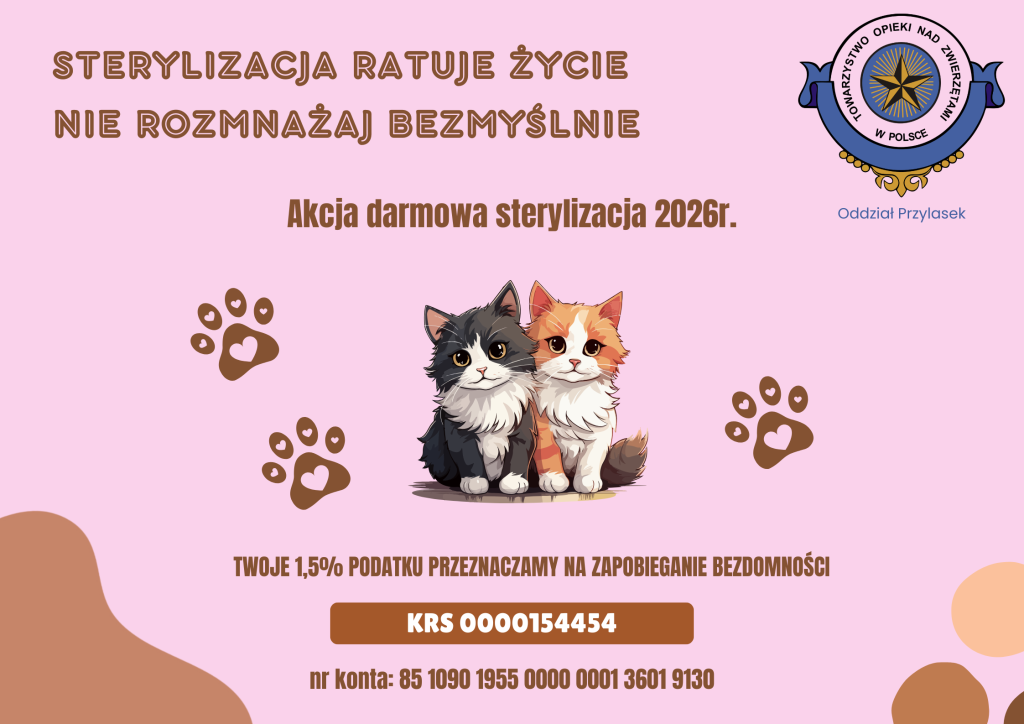 Szczegóły odnośnie akcji darmowej sterylizacji na plakacie.
