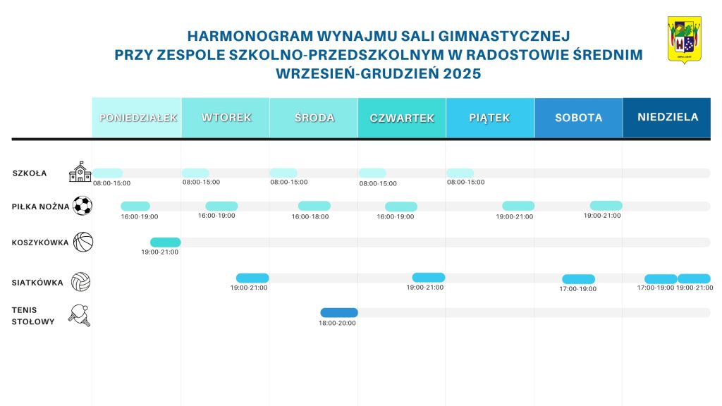 Harmonogram wynajmu sali gimnastycznej przy ZSP w Radostowie Średnim