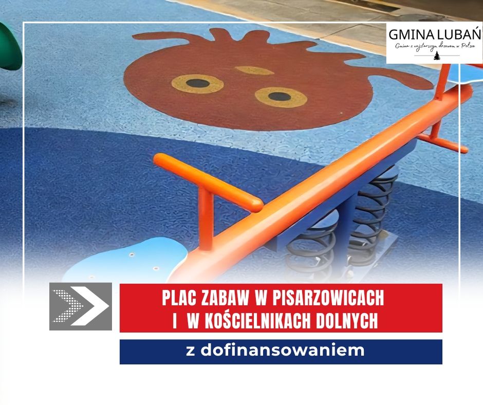 Informujemy, że Gmina Lubań otrzymała dofinansowanie na realizację zadania pn. „Modernizacja i doposażenie placu zabaw w Kościelnikach Dolnych i Pisarzowicach”. Wysokość pozyskanego dofinansowania: ponad 308 tys. zł. To aż 75% kosztów zadania i kolejny efekt skutecznego pozyskiwania środków zewnętrznych przez Gminę.